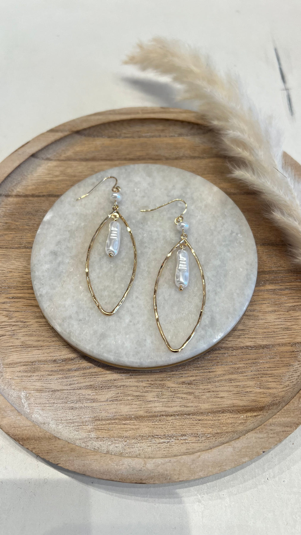 Elevate your everyday look with our Luna Pearl Drop Earrings—a delicate blend of modern design and timeless elegance. Featuring a hammered gold open frame with a luminous pearl drop, these earrings add the perfect soft shimmer to any outfit.